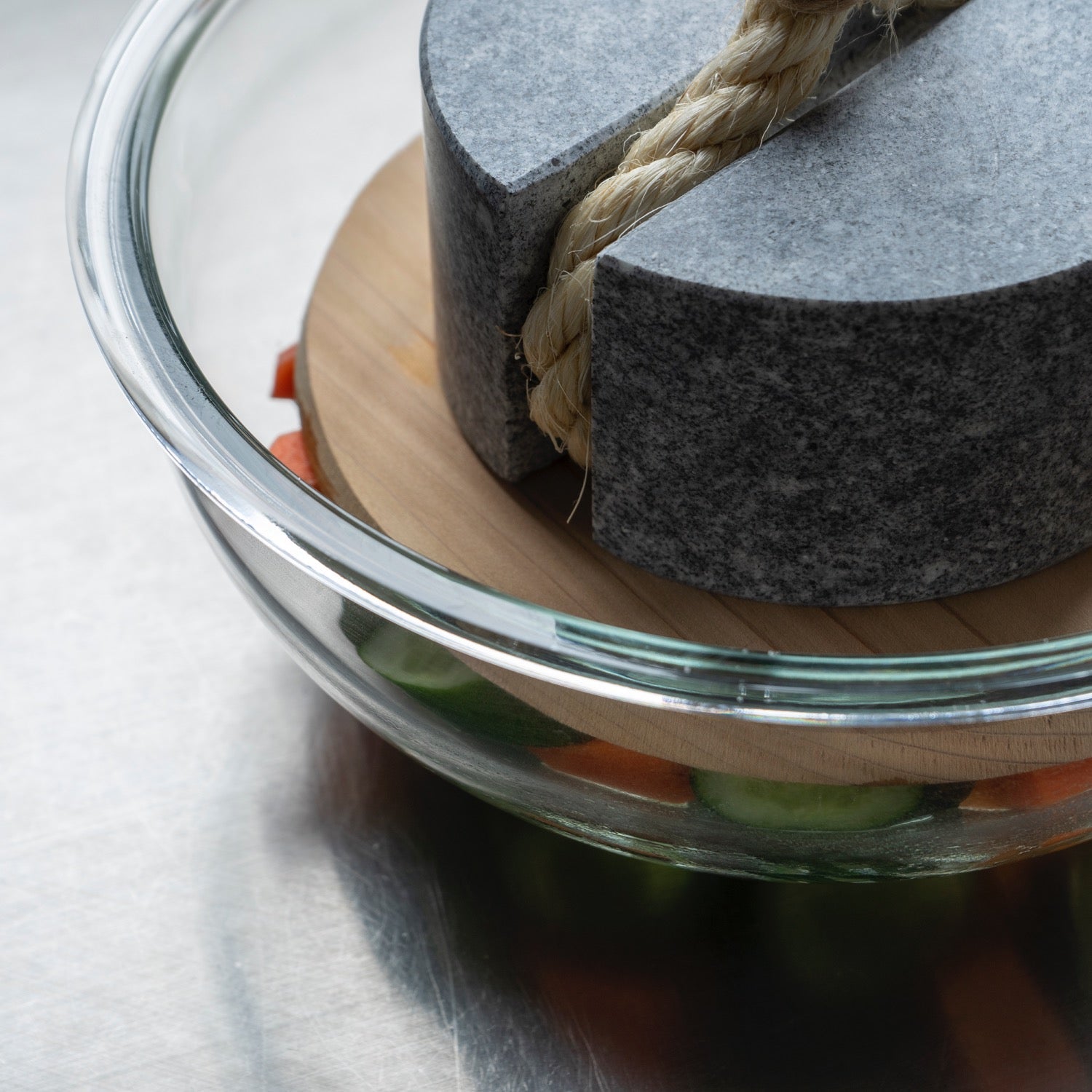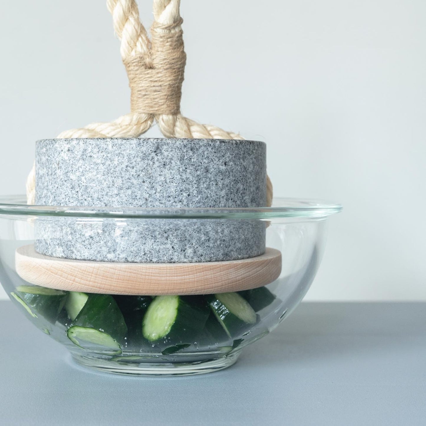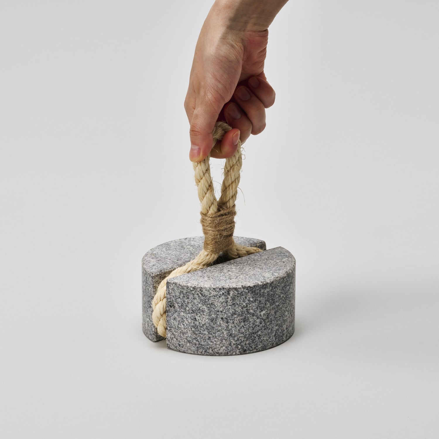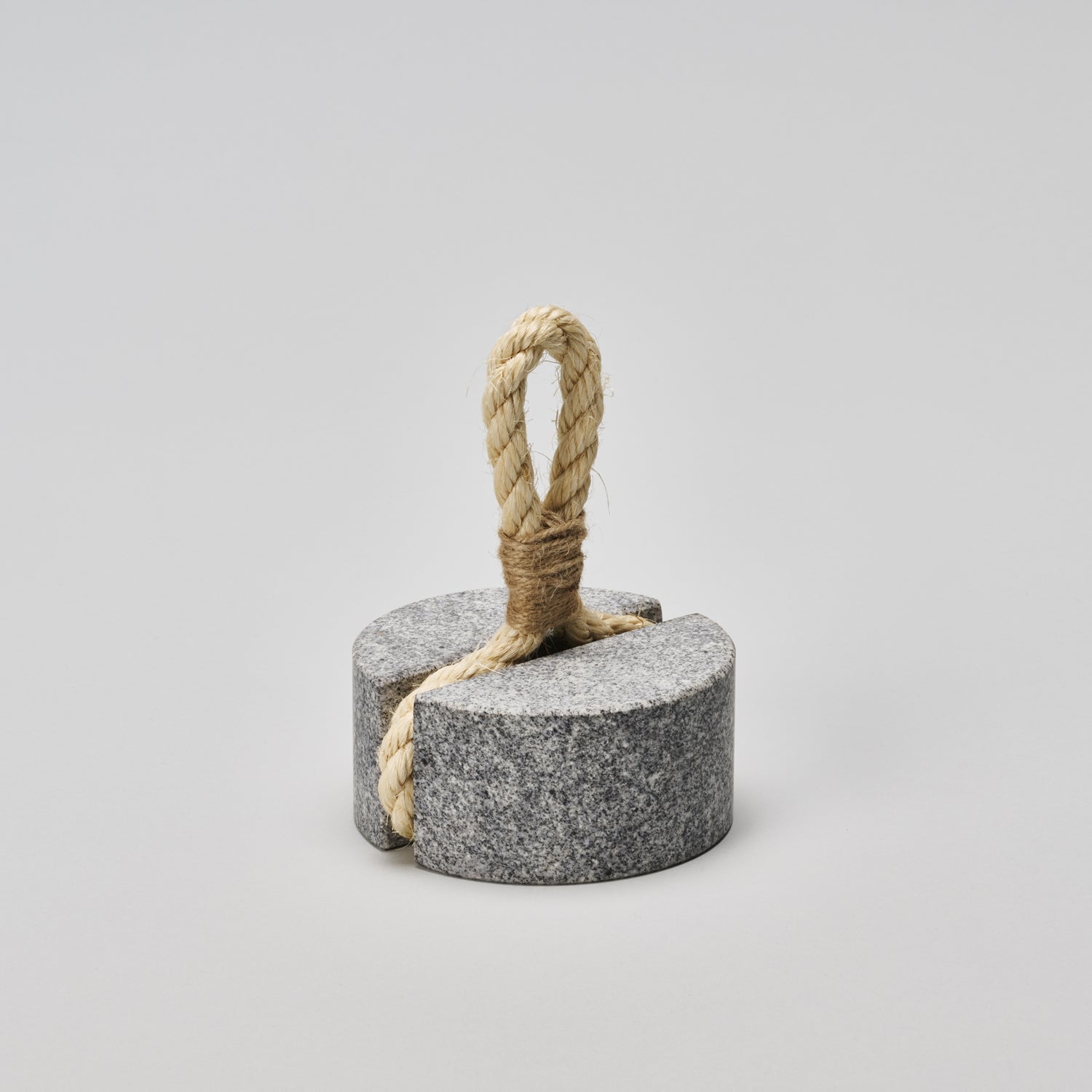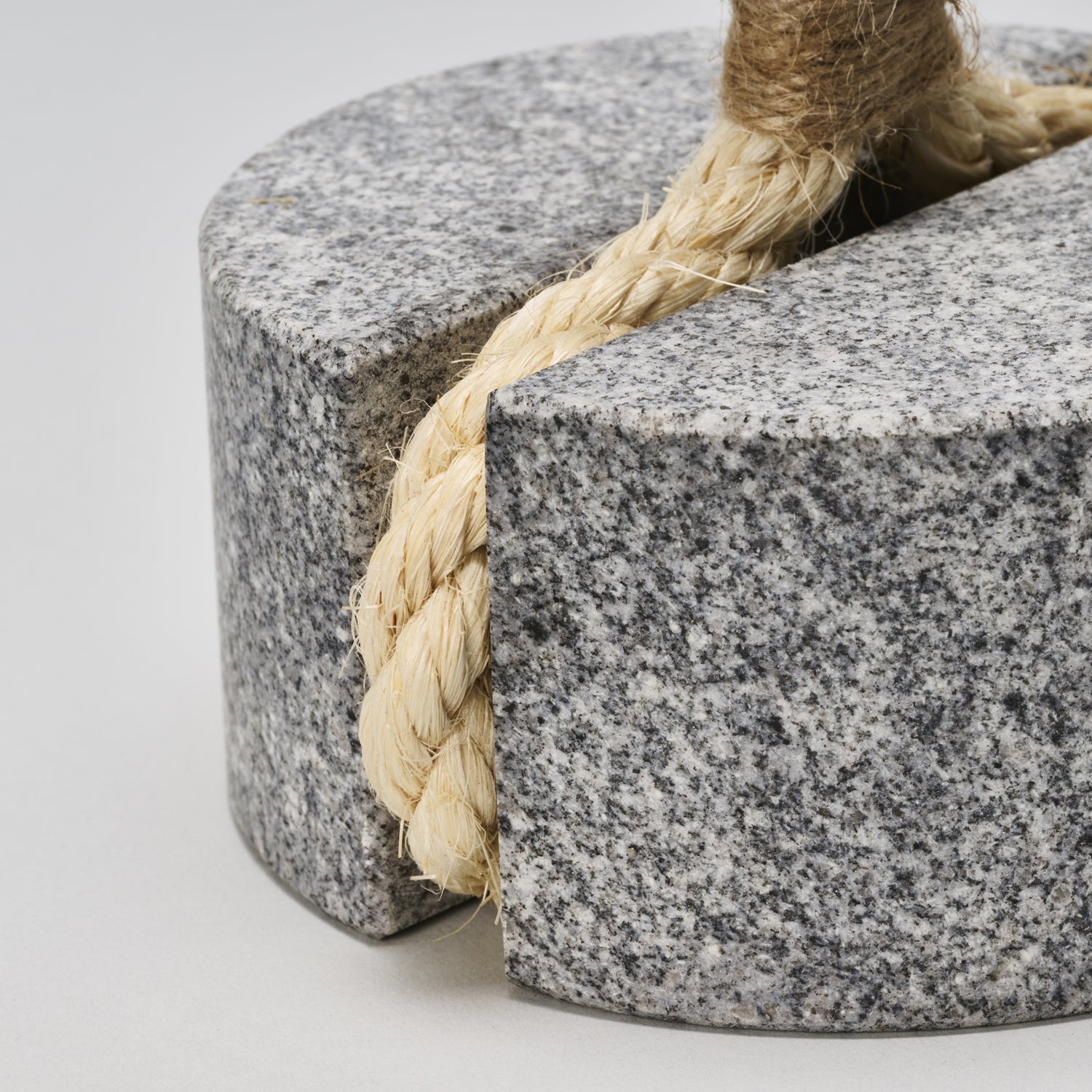 A small weight traditionally used in pickling. The simple design combined with the rope handle gives a rustic and warm impression.