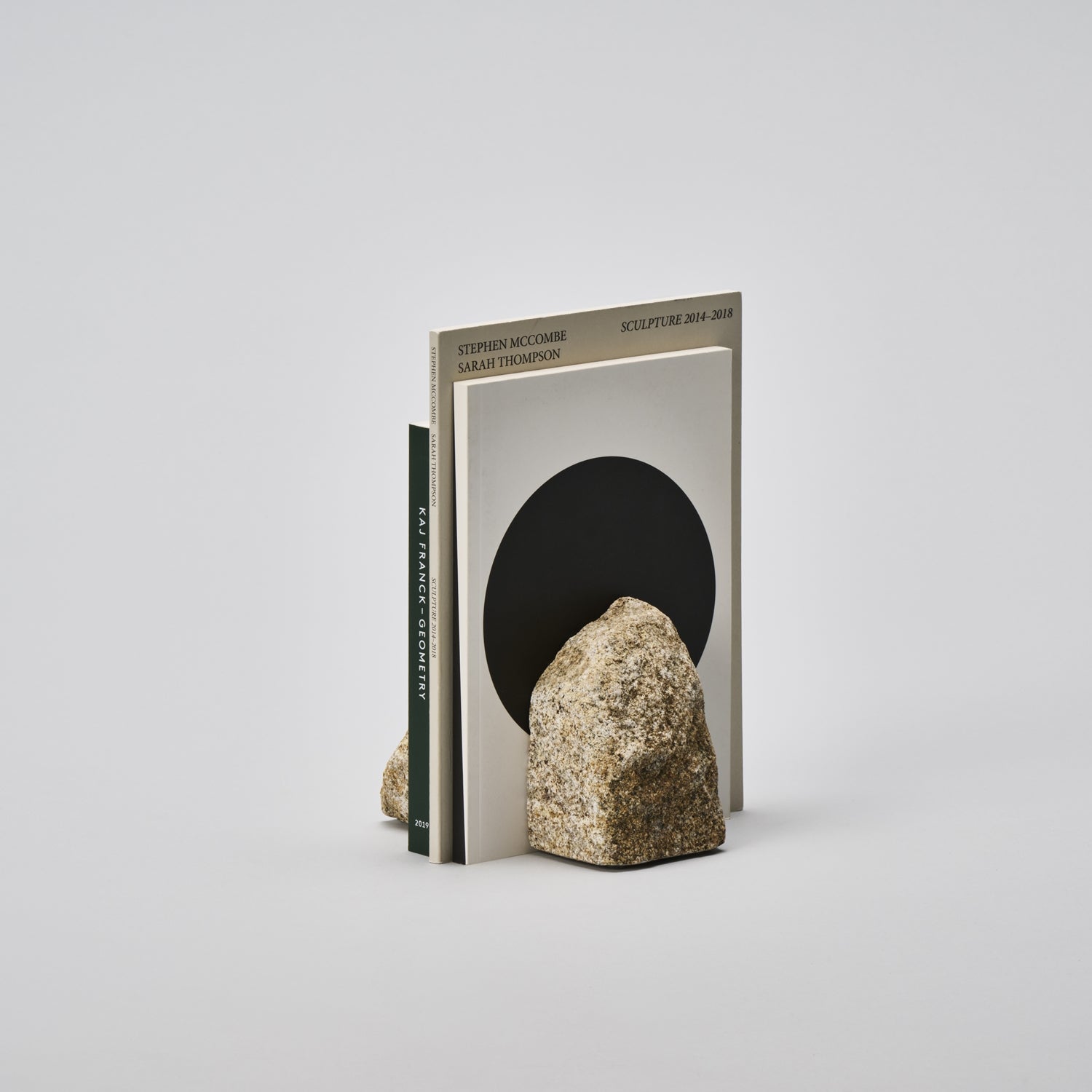 Bookends that take advantage of the natural beauty of stone. Made from one stone that has been split in half, the sides facing the books have been polished so as not to scratch surfaces or damage the books. These stones add an air of natural elegance to any room or study.