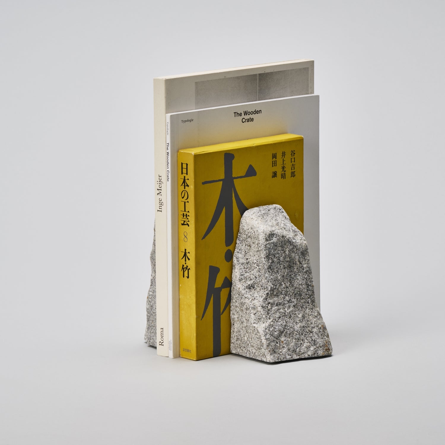 Bookends that take advantage of the natural beauty of stone. Made from one stone that has been split in half, the sides facing the books have been polished so as not to scratch surfaces or damage the books. These stones add an air of natural elegance to any room or study.