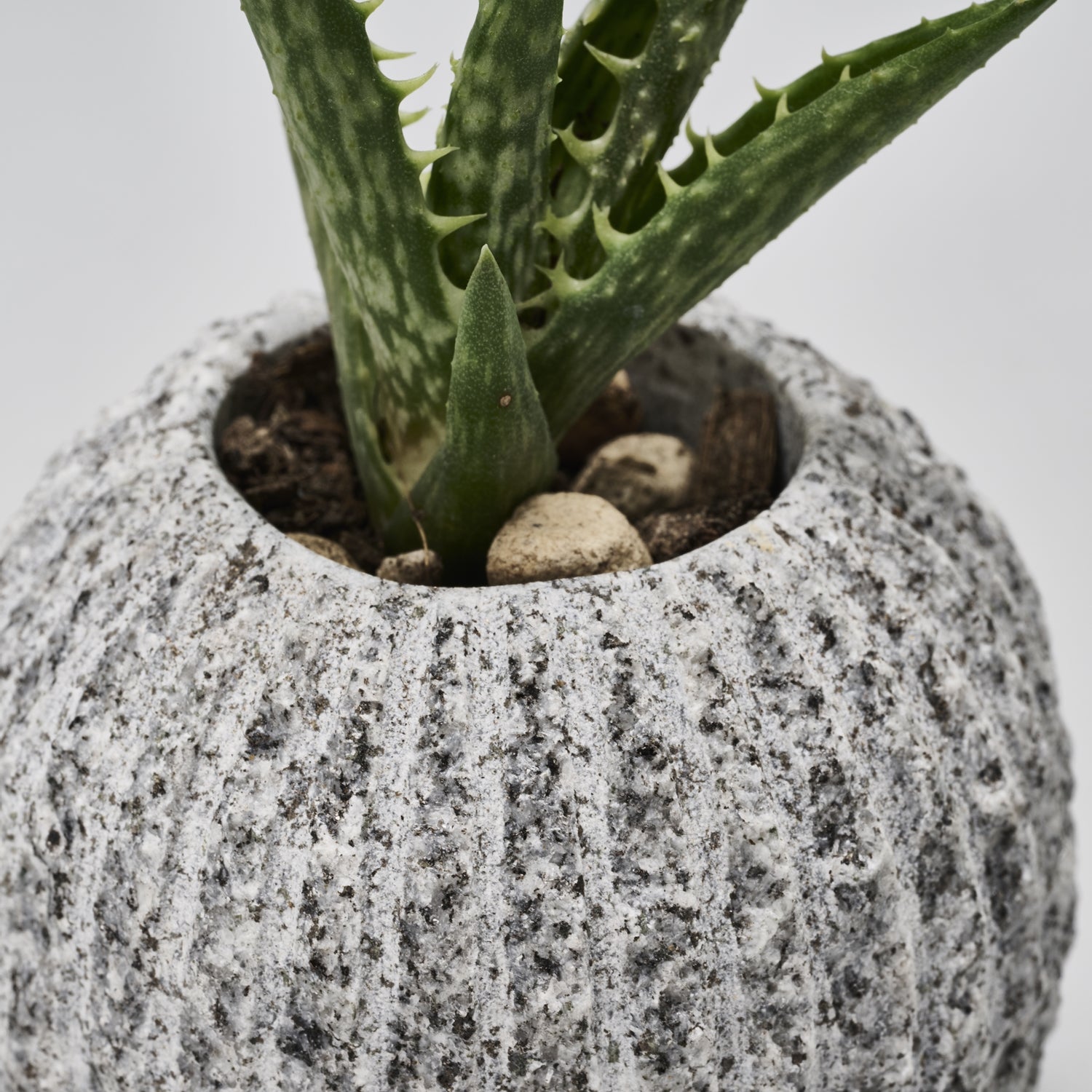 A series of vases reassembling cacti due to the vertical carvings. The different sizes in conjunction with the rough vertical lines create a charming space that can surely soften the atmosphere of any room.