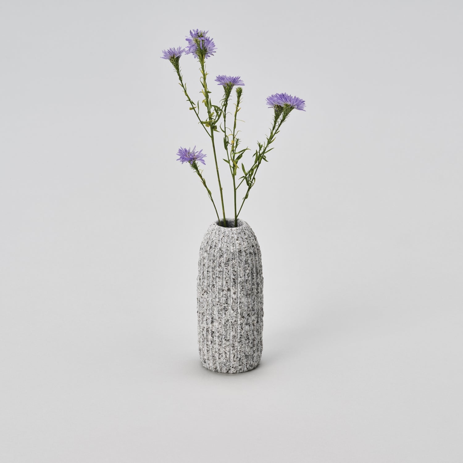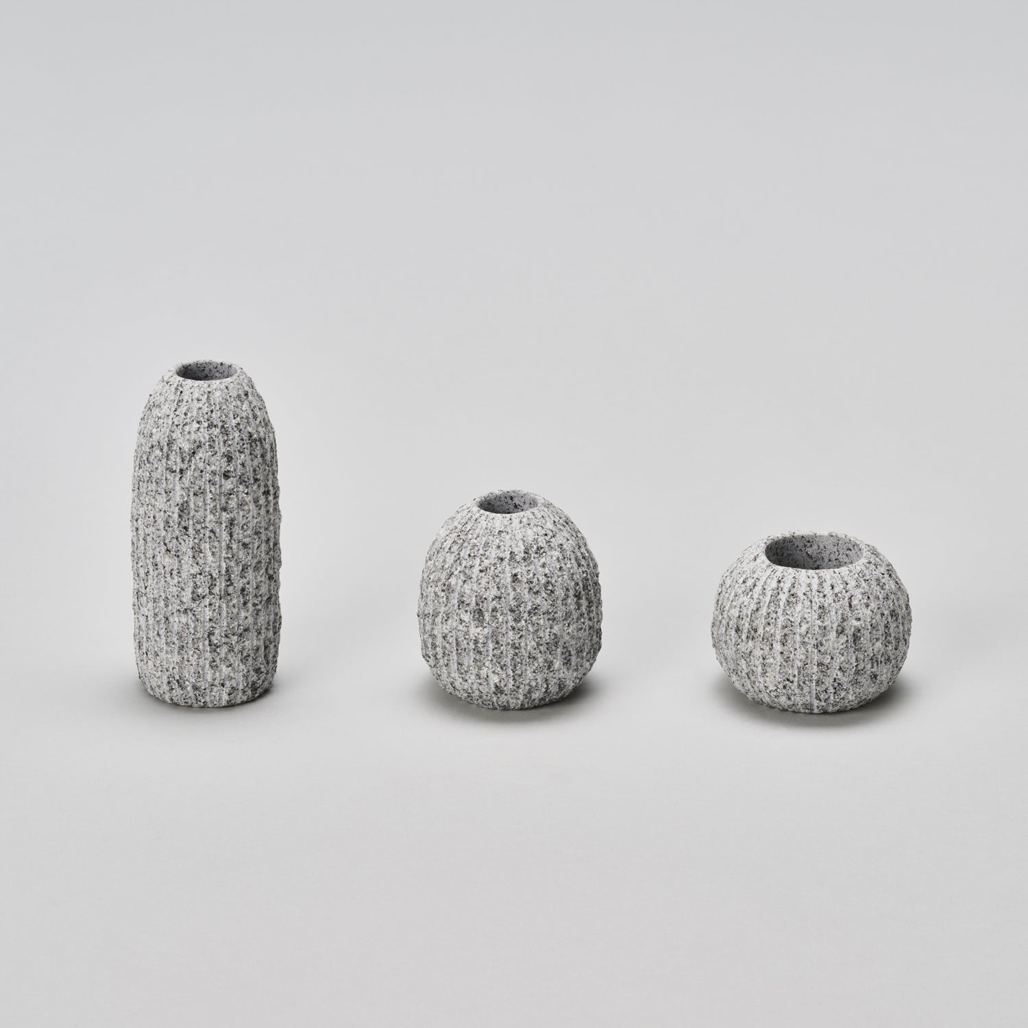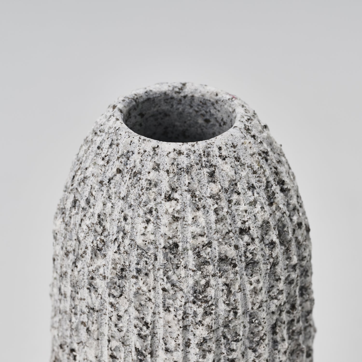 A series of vases reassembling cacti due to the vertical carvings. The different sizes in conjunction with the rough vertical lines create a charming space that can surely soften the atmosphere of any room.