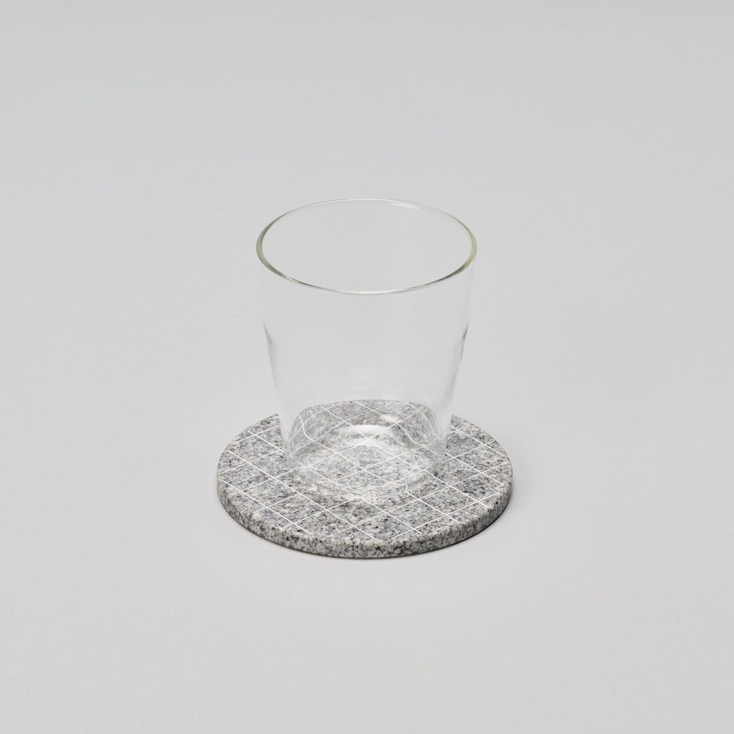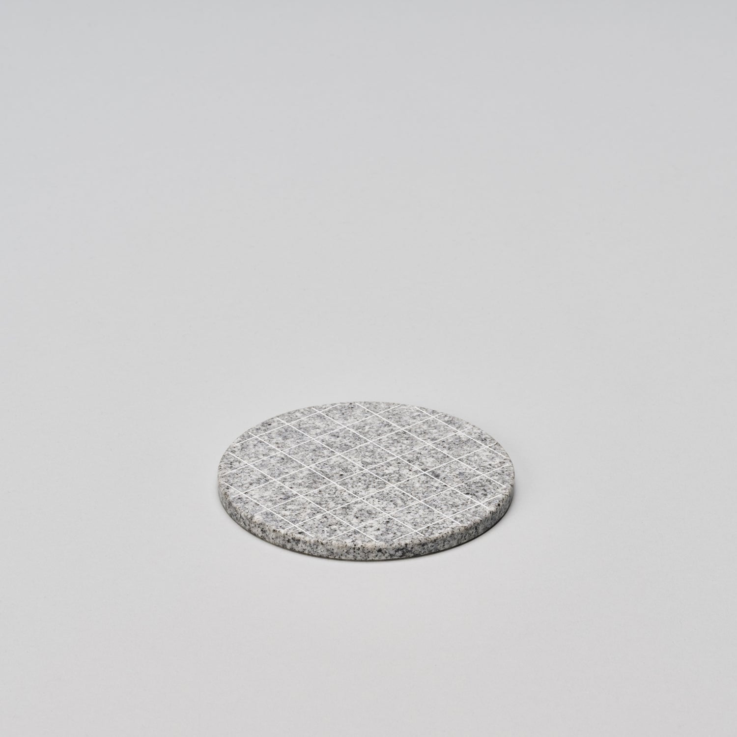 A flat, circular coaster. It can be used to place glasses or cups on it, as well as for holding dry snacks, small items, or as a planter plate. The lines on the surface are engraved using a letter carving technique.