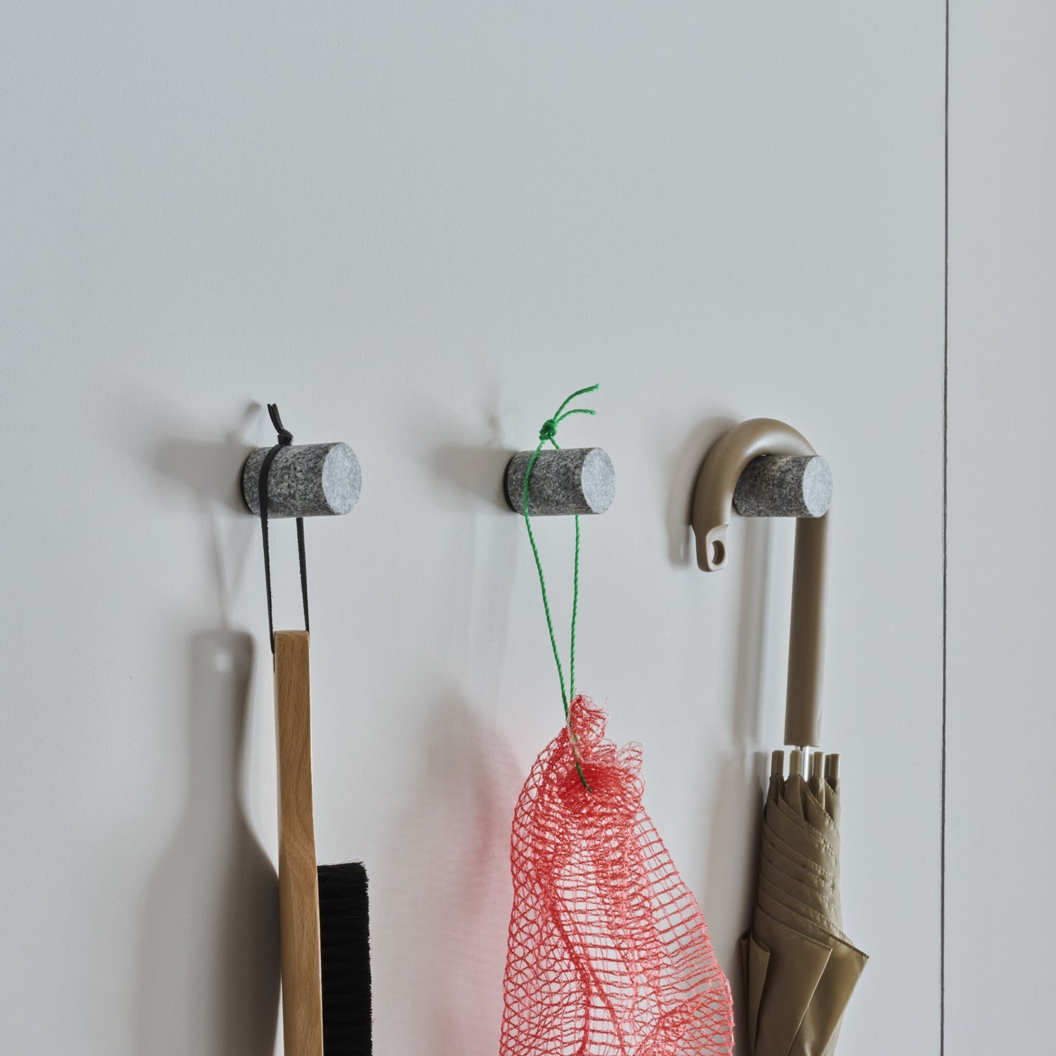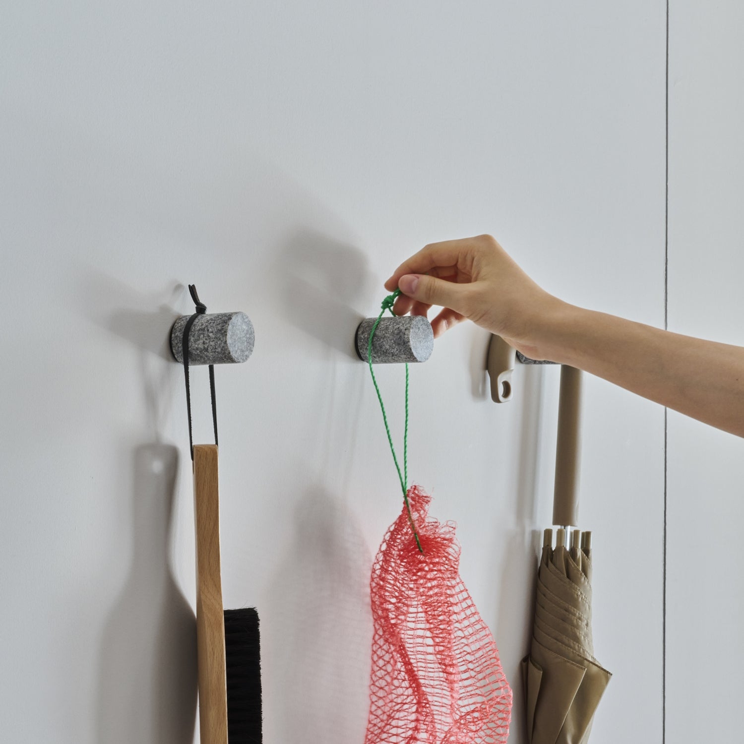 A cylinder type of the wall-mounted “HOOK”. Its shape allows you to stably hang a wider variety of objects such as umbrellas. It can easily be attached to the wall with the included dedicated metal fittings.